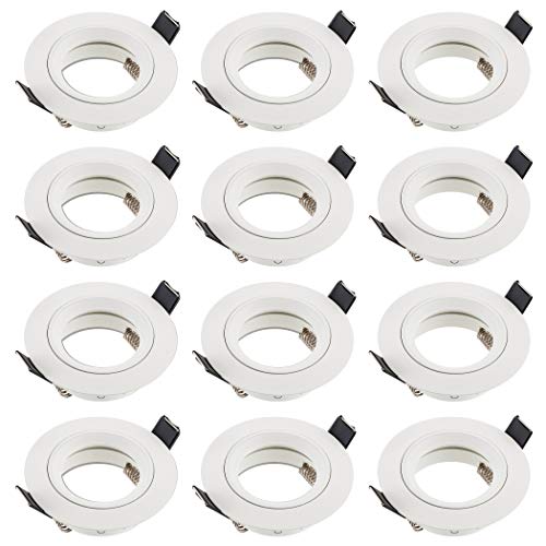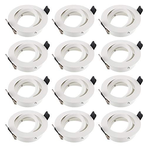 SEBSON Infälld Spotlight runt svängbar Set av 12 - Vit aluminium - Tak Monteringsram håldiameter 75mm - Takspotlight inkl. GU10 uttag för LED/halogen