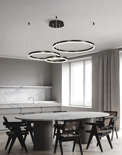 YYUTLUO Modern DIY Circle LED-Ljuskrona | 3 Svart Ringar: 40+60+80cm=90W | Metall + Akryl LED Pendelbelysning, 2,4G Dimbar Fjärrkontroll | Runt Tak Hängande Lampa, Vardagsrum Sovrum Matsal Kök