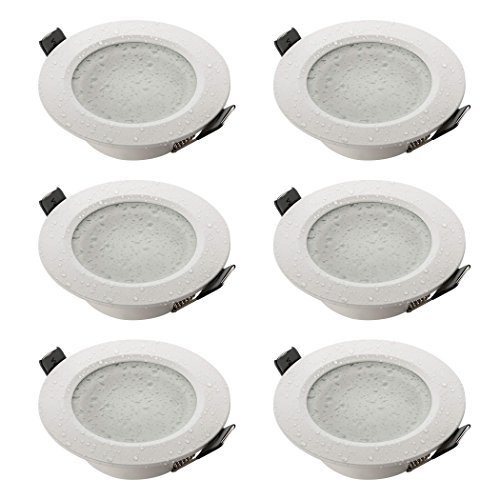 SEBSON Infälld Spotlight runt IP44 för Badrum Set av 6 - Vit aluminium - Tak Monteringsram håldiameter 70mm - Takspotlight inkl. GU10 uttag för LED/halogen