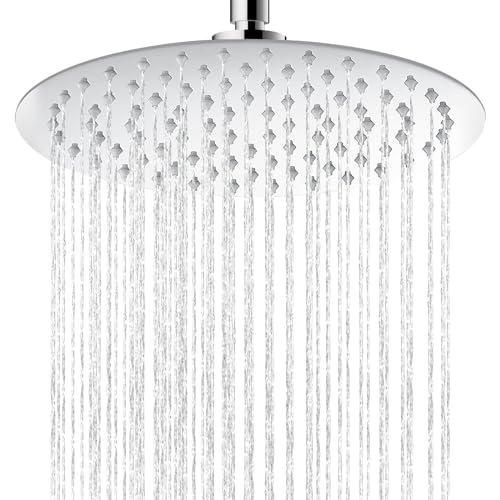 Regndusch duschhuvud 20 cm (20 tum), regnduschhuvud i rostfritt stål justerbar huvuddusch, runt duschhuvud med polerad spegeleffekt för vägg eller tak, inbyggda duschmunstycken 20 cm