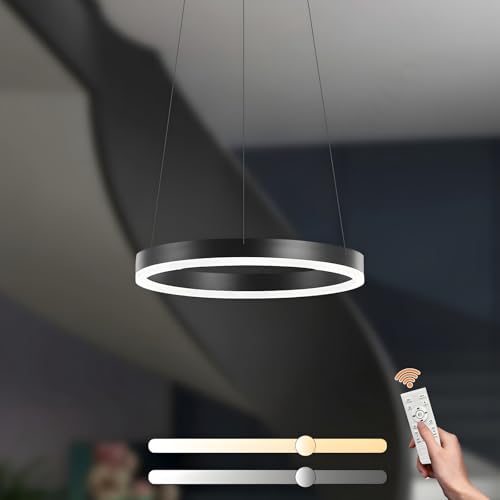 YYUTLUO Modern DIY Circle LED-Ljuskrona | 1 Svart Ringa, ∅40cm=23W,H150cm Höjd Justerbar, Metall + Akry, Dimbar Fjärrkontroll, Runt Tak Hängande Lampa, Vardagsrum Sovrum Matsal Kök Kontor Studie Bar