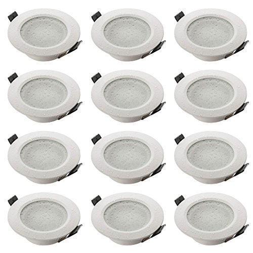 SEBSON Infälld Spotlight runt IP44 för Badrum Set av 12 - Vit aluminium - Tak Monteringsram håldiameter 70mm - Takspotlight inkl. GU10 uttag för LED/halogen