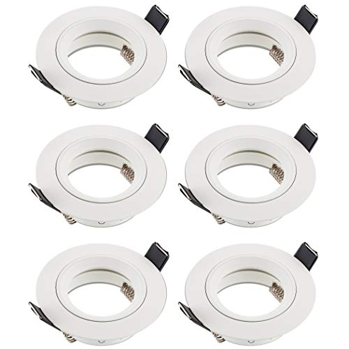 SEBSON Infälld Spotlight runt Set av 6 - Vit aluminium - Tak Monteringsram håldiameter 65mm - Takspotlight inkl. GU10 uttag för LED/halogen