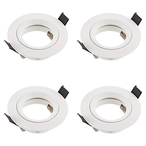 SEBSON Infälld Spotlight runt Set av 4 - Vit aluminium - Tak Monteringsram håldiameter 65mm - Takspotlight inkl. GU10 uttag för LED/halogen