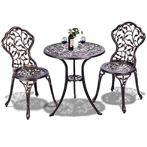 GIANTEX Bistro-set i 3 delar, bistrobord med 2 stolar, trädgårdsmöbler i aluminium, trädgårdsset, balkongset, antik, runt trädgårdsbord, balkongmöbler, set, trädgård, sittgrupp, 2 sittpall utomhus,