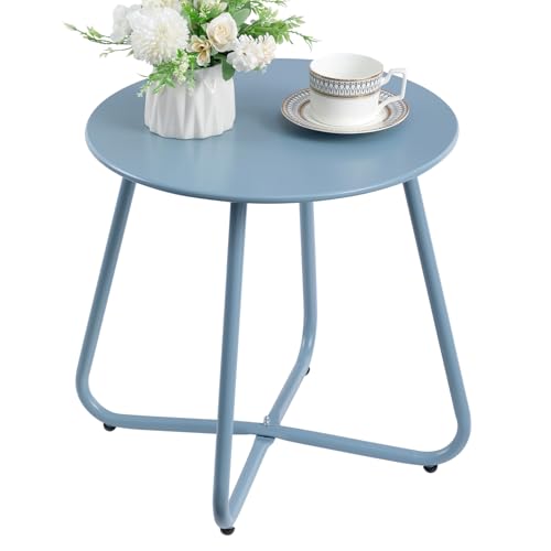 HollyHOME Sidobord utomhus balkongbord litet trädgårdsbord runt sidobord metall väderbeständigt loungebord utomhus soffbord för uteplats terrass vardagsrum, gråblått