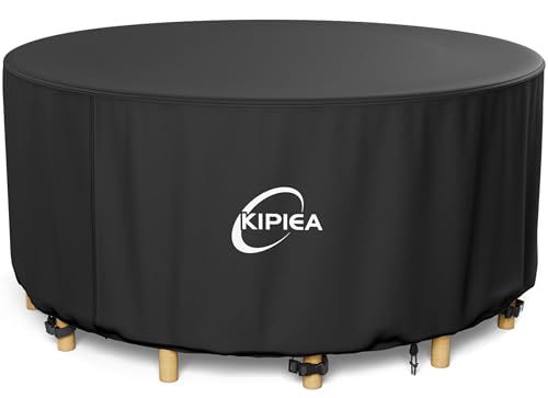 PATIO PLUS Stort runt trädgårdsbord möbelöverdrag 420D Oxfordtyg utomhus uteplats cirkulärt set skydd för stolset vattentät, vindtät, anti-UV, trädgårdsöverdrag 190 x 80 cm, svart