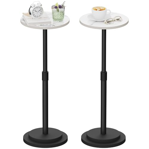 GUOHNHE Runt soffbord, justerbar höjd litet nattduksbord, vardagsrumsbord, för vardagsrum, sovrum, modern stil, set med 2, vit, GBZ001CW-2