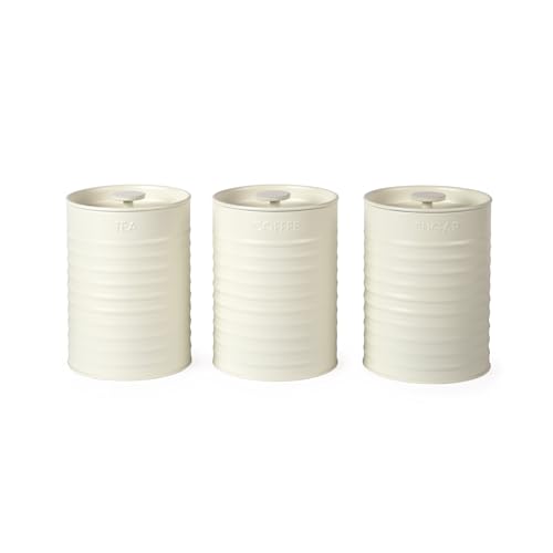 Russell Hobbs RH03268CEU7 räfflad 3-delad behållare set – uppsättning av 3 köksförvaringsbehållare för te, kaffe och socker, hållbart pulverlackerat stål, dragtopplock, lätt att rengöra, ribbad