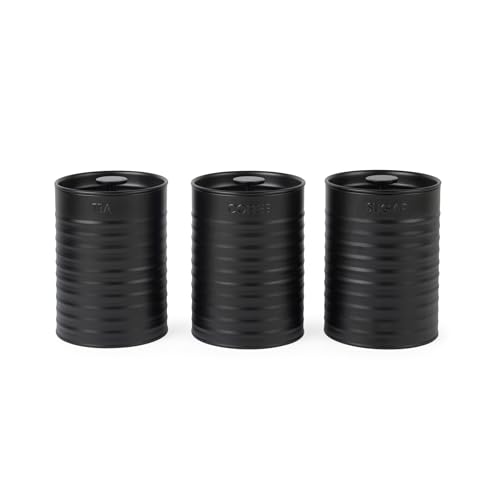 Russell Hobbs RH03268EU7 ribbad 3-delad behållare set – uppsättning av 3 köksförvaringsbehållare för te, kaffe och socker, hållbart pulverlackerat stål, dragtopplock, lätt att rengöra, ribbad design,