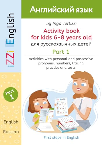 IZZi English Activity Book for Kids 6-8 Years Old Part 1: Activities with Russian Instructions -Vocabulary, Personal and Possessive Pronouns, Numbers, Handwriting Practice and Tests