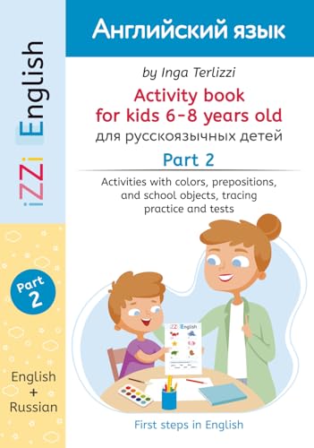 IZZi English Activity Book for Kids 6-8 Years Old Part 2: Activities with Russian Instructions -Vocabulary, Colors, Prepositions, School Objects, Handwriting Practice and Tests