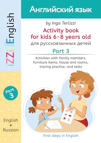 IZZi English Activity Book for Kids 6-8 Years Old Part 3: Activities with Russian Instructions -Vocabulary, Family, Furniture, House and Rooms, Handwriting Practice and Tests