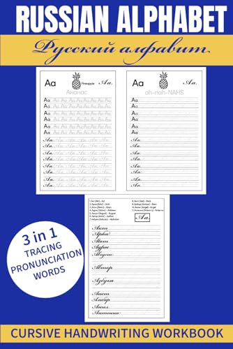 Russian Alphabet & Cursive Handwriting Workbook: Practice Tracing, Cursive Letters, Vocabulary and Pronunciation for Beginners.