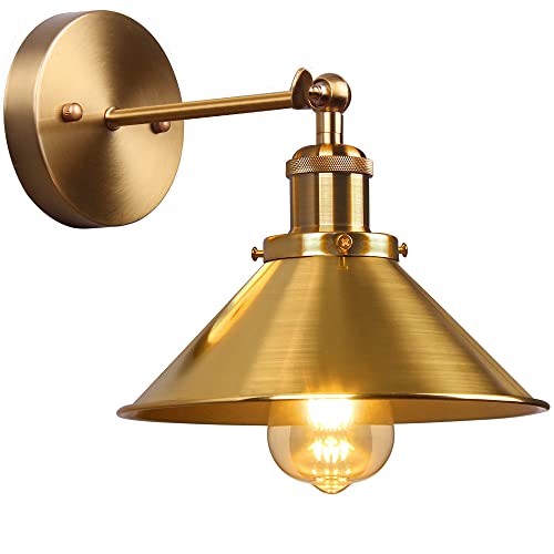 AWEKLIY Vintage industriella vägglamporarmatur E27-ljuskälla, inomhus belysning metall retro antik mässing rustik lampa för sovrum matsal café bar gång belysning vardagsrum & loft Φ22cm gyllene