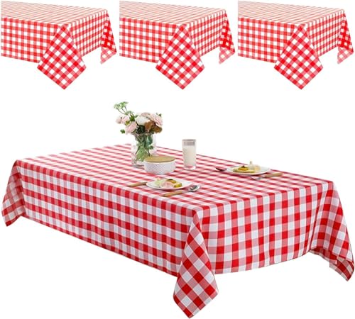 LTHERMELK 4 st rutig duk, 130 x 220 cm rustik plastduk, rektangulär engångsduk för fest vattentät och olja, perfekt för fester, bröllop, camping