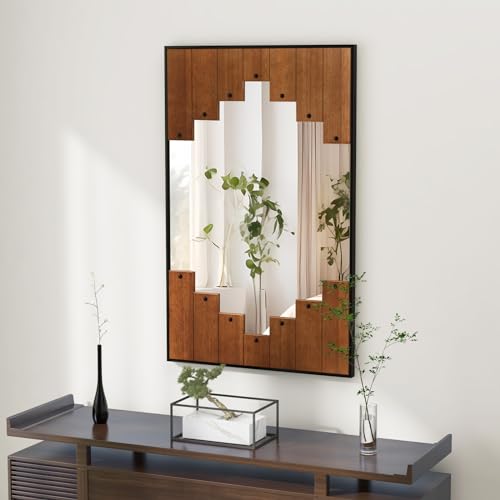AAZZKANG Rustik träspegel rektangel dekorativ väggspegel med ram sovrum vardagsrum badrum hängande spegel brun