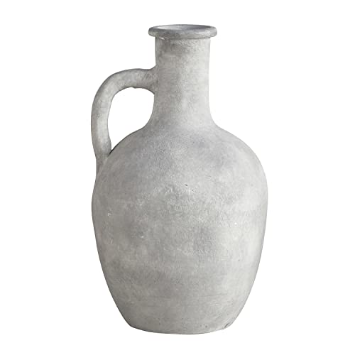 PORCER 25 cm antik keramisk vas, terrakottavas med handtag, boho-dekor bondgård dekorativ vas, rustik vas för heminredning, vardagsrum, entré, bröllop - nödställd design, grå
