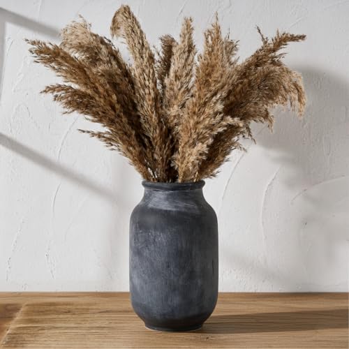 SIDUCAL Rustik bondgårdsblomvas | 25 cm stor keramisk vas | Pampasgräsvas | Modern bondgårdsdekor vas för heminredning, bord, vardagsrumsdekoration, hylldekor, spisel, svart