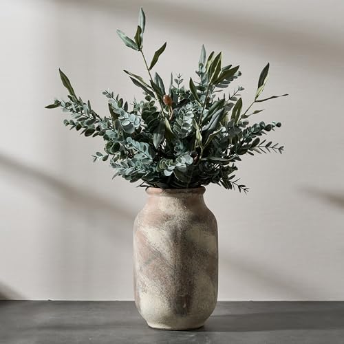 Denique Rustik keramisk blomvas, vintage, hög golvvas, bondgårdsdekor, stora vaser för vardagsrum, entré, bord, mittpunkt, dekor, terrakottavaser keramik lera vas (C-35 cm)
