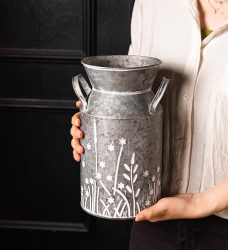 Vintage galvaniserad metall mjölkburk, bondgård rustik blomma kanna vas, dekorativ blommig mjölkkanna vas för heminredning, 25 cm H