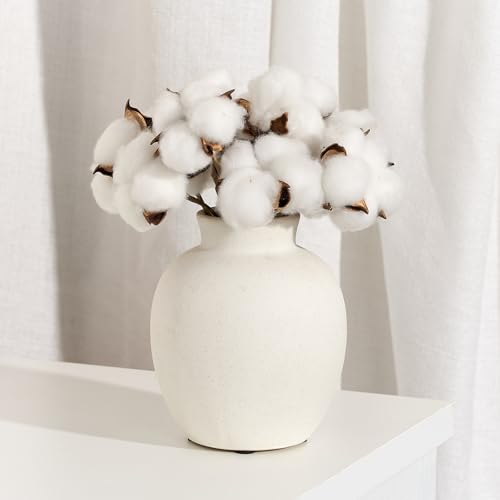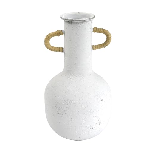 JDZMYF Rustik vit keramisk bondgård blomvas för heminredning vardagsrum, terrakotta vintage vas neutral höga lervaser boho dekorativ vas perfekt för bord, spisel och hylldekor – 23 cm