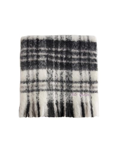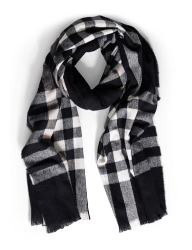 Lindoro Mysig Tartan rutig merinoull halsduk, lång varm lätt vinter klassiska halsdukar med presentask, Svart/vit rutig, one size