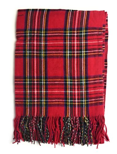 Supermjuk rutig kashmirkänsla tartan rutig halsduk – halsdukar för män – herr dam mjuk kashmirhalsduk, Röd stuart tartan, en storlek
