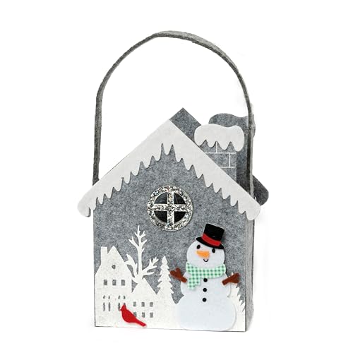 Mopec NA4825 Filt handtag korg hus med snögubbe med rutig halsduk 14 x 24 x 6,5 cm Vichy, grå