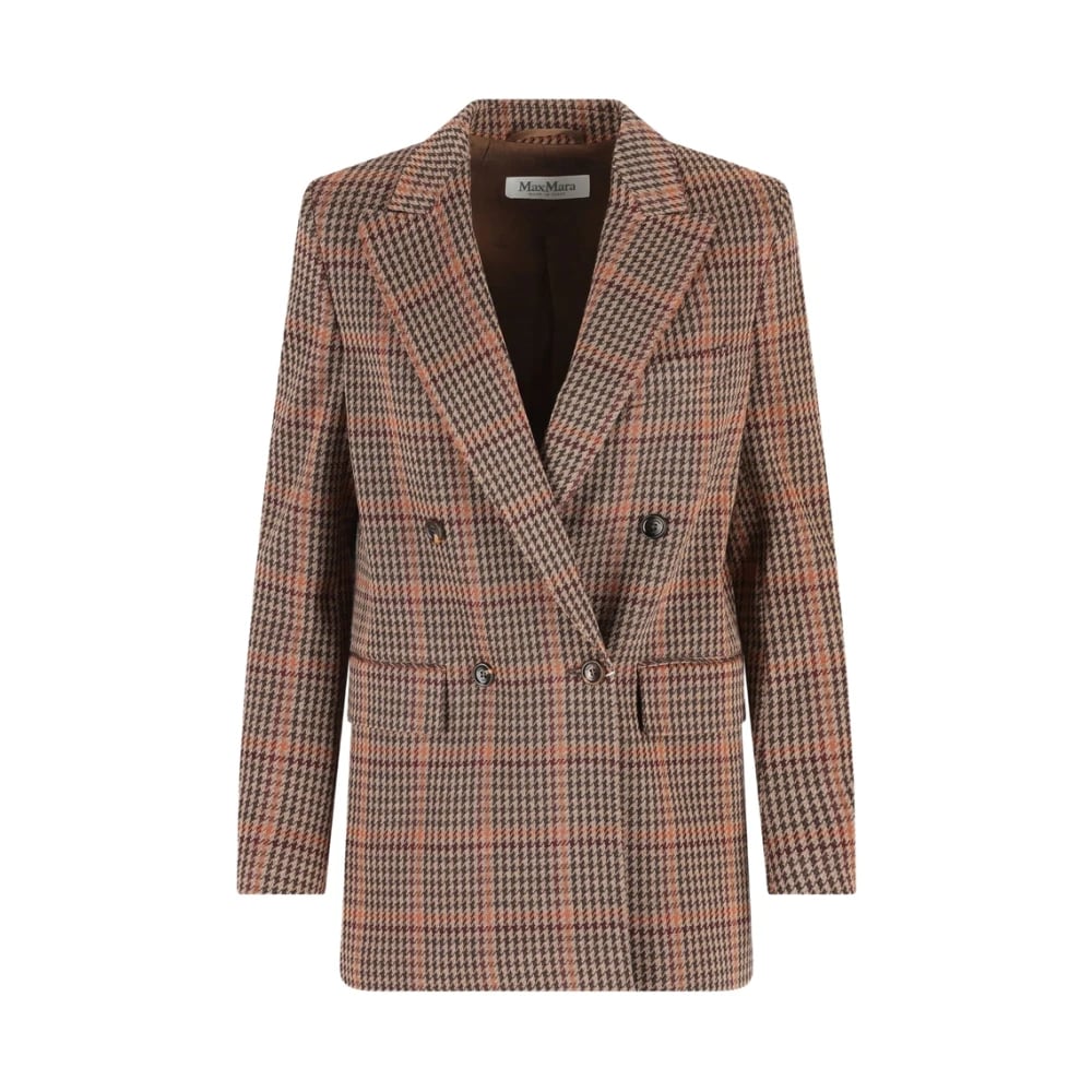 Max Mara, Jackor , Dam, M, Brun Rutig Dubbelknäppt Jacka