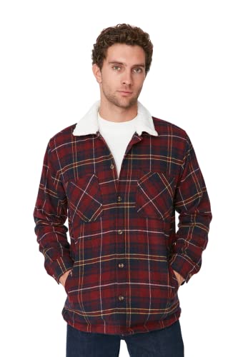 Trendyol Herr Lapel Krage Rutig Normal Jacka Kappa, Vinröd, 2XL, Vinröd