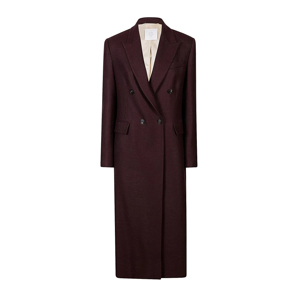 Eleventy, Kappor & Rockar , Dam, M, Linne, Rutig Dubbelknäppt Kappa