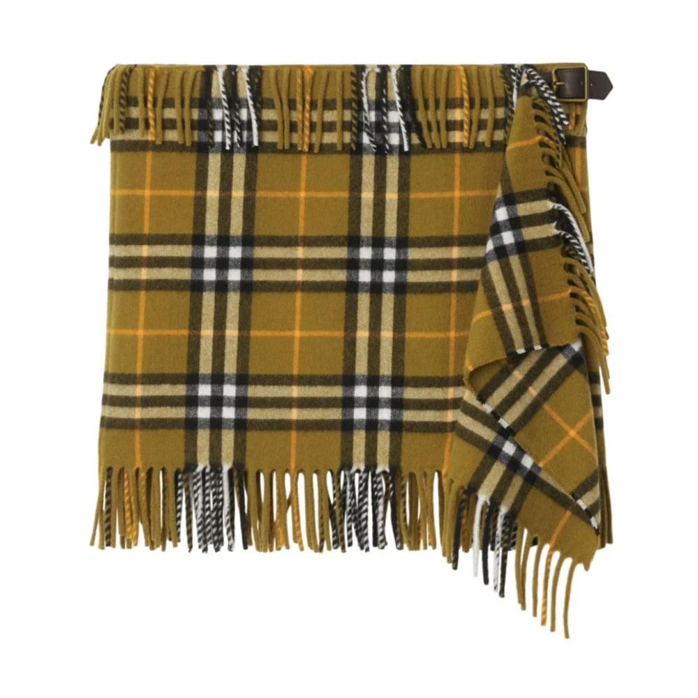 Burberry, Kjolar , Dam, M, Kashmir, Rutig kjol i ull och kashmir med fransar