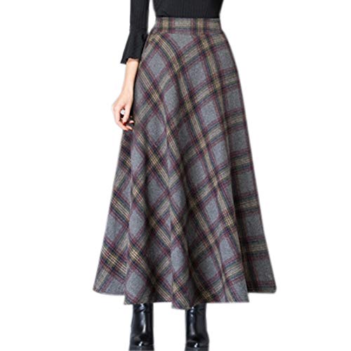 WSLCN Dam lång rutig rutig kjol i ull veckad vintage A-linje hög maxi kjolar med fickor gunga kjol utsvängd höst vinter, 616-grå, L