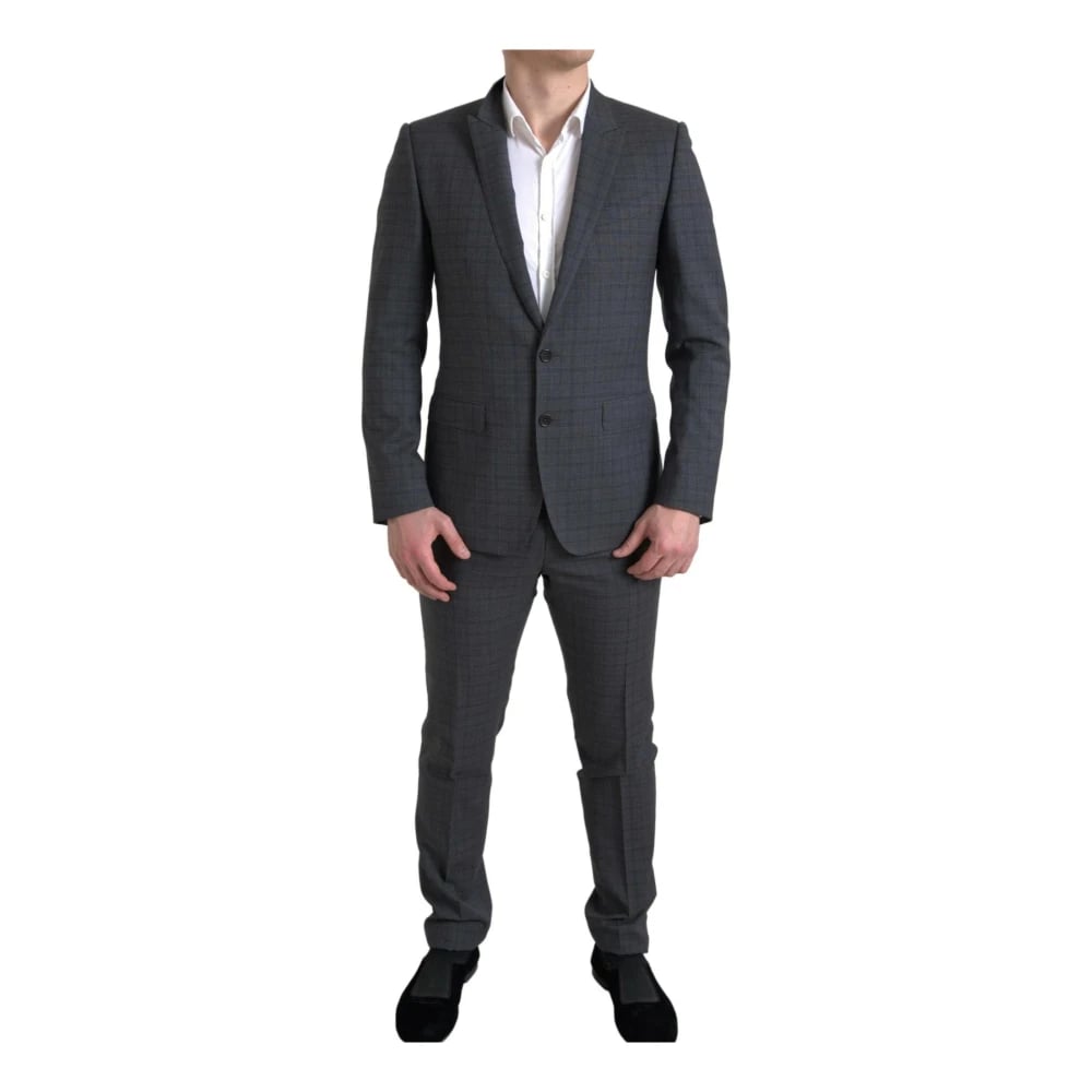 Dolce & Gabbana, Kostymer , Herr, M, Elegant Grå Rutig Slim Fit Kostym