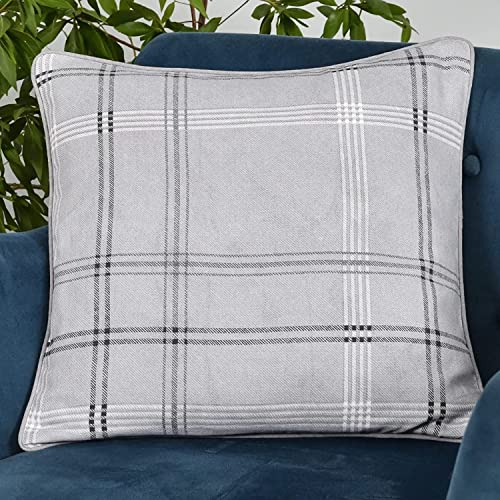 Sleepdown Tryckt rutig fylld kudde mjuk dekorativ bomullskudde för heminredning soffa sovrum och bil – 45 cm x 45 cm – grå