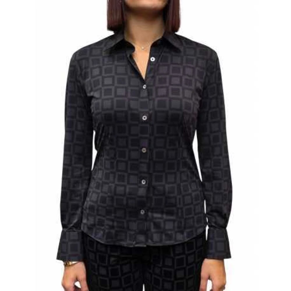 Caliban, Stickade Tröjor , Dam, S, Elegant rutig ståkrage skjorta