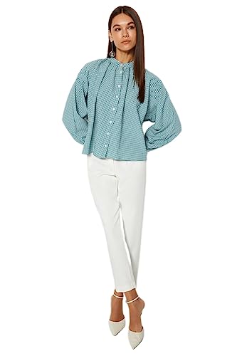 Trendyol rutig dam/rutig långa ärmar, vanlig skjorta, Oljegrön, 34