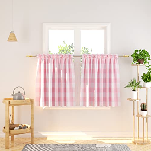 Natus Weaver Cafe Gardiner 76 cm långa buffalo rutiga köksnivåer 2 paneler stång ficka Gingham ruta korta små halvt fönster gardiner badrum rosa och vit