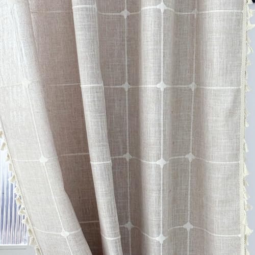 Amidoudou Gardiner, 1 par, bomullslinne, boho/lantlig stil, rutiga, med tofs, för sovrum och vardagsrum, beige, 137 x 213 cm