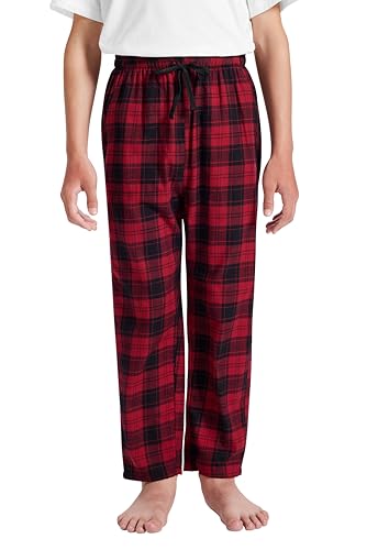 MoFiz Långa pyjamasbyxor för pojkar i bomull med varma rutiga byxor med fickor 7–18 år, No.YZ58, M
