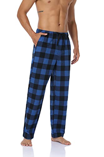 AUYAO Rutiga pyjamasbyxor för män, mjuka rutiga loungebyxor i bomull med fickor, justerbar pyjamas, loungebyxor, nattkläder med rutig design, avslappnad passform, Blå pläd, XL