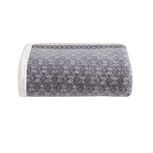 Eddie Bauer- överkastfilt, supermjuka vändbara sherpa fleece-sängkläder, perfekta jul- och vita elefantgåvor, mysiga rutiga överkastfiltar för soffan (San Juan grå, överkast)