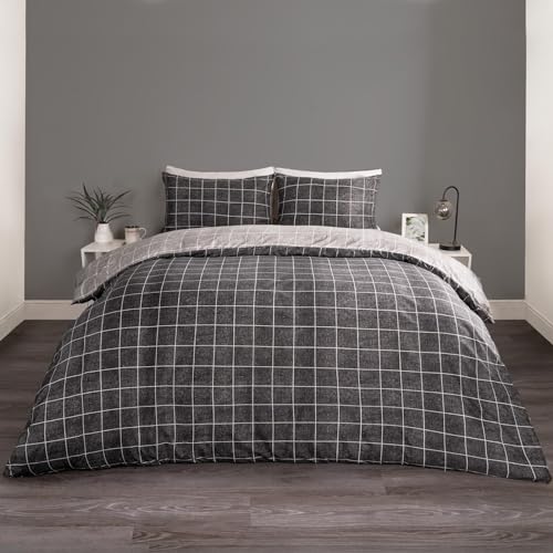 Sängkläder 200x220 cm - Rutiga grå sängkläder i flanell - rutigt bäddset - 100% bomullsflanell - By Night