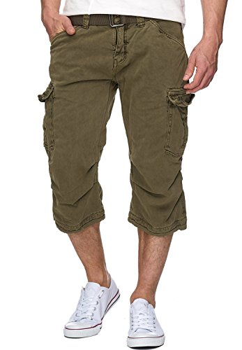 Indicode Nicolas Check för herrar, 3/4 rutiga cargoshorts med 6 fickor inkl. bälte av 100 % bomull | korta byxor sommar, herrshorts, shorts, shorts herr, korta byxor för män, Armé, M