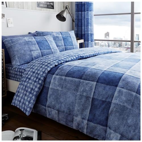 GC GAVENO CAVAILIA lyxigt denim rutigt set med påslakan och kuddfodral, polyester-bomull, blå Single (135 x 200cm)