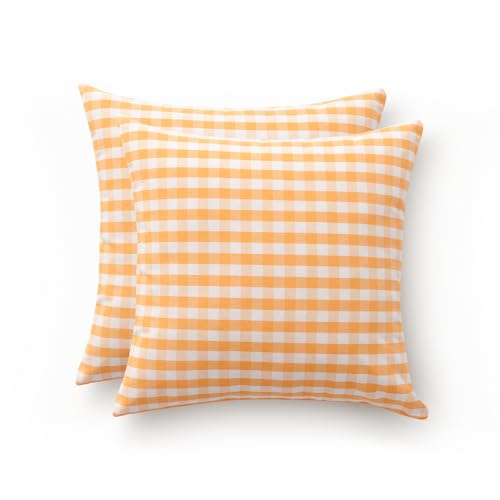 GAMUSI Vichy rutigt kuddfodral 45x45 set - dekorativa kuddfodral soffa med dragkedja bomull andningsbar och mjuk, gul