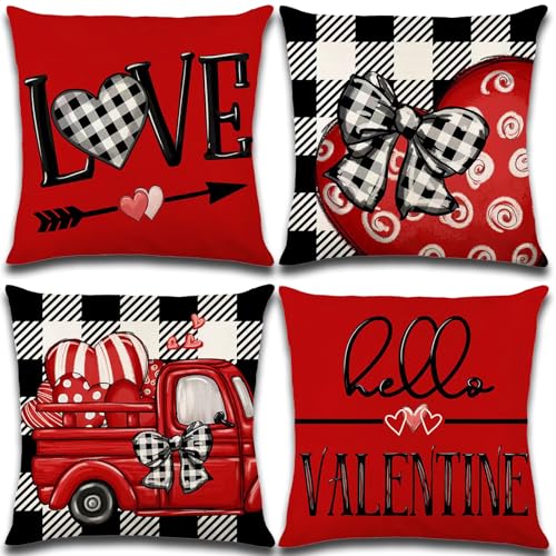 Artscope Buffalo rutigt kuddfodral med hösttema, dekorativa kuddfodral med pumpor, lönnlöv, lastbil, kuddfodral, soffkuddar, höstkuddar för soffa, bil, sovrum, 45 x 45 cm, 4 stycken