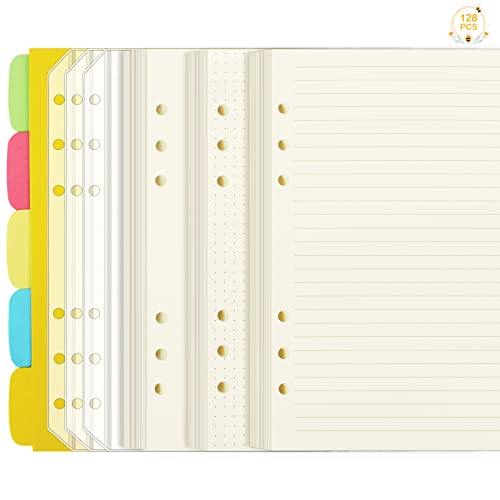 Ruicaifu A5 papper, 120 ark prickigt horisontellt linje, blankt och rutigt papper med 3 vykortfodral, 5 färgade skiljeblad A5 för 6 ringar, anteckningsbok, dagbok