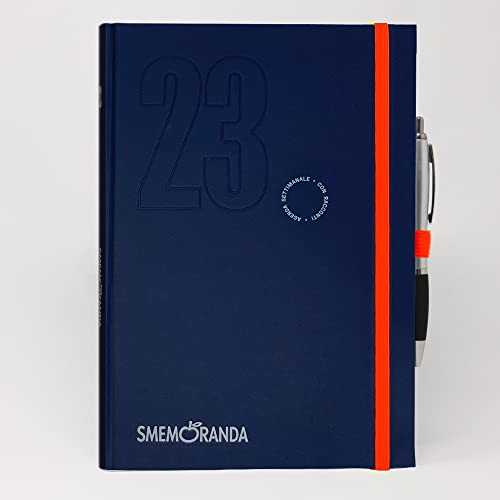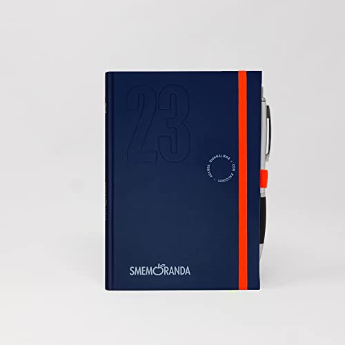 Smemoranda - Veckodagbok 12 månader, januari-december 2023 - Rutigt papper, extra stor storlek 16,8 x 24 cm - penna ingår - blå färg
